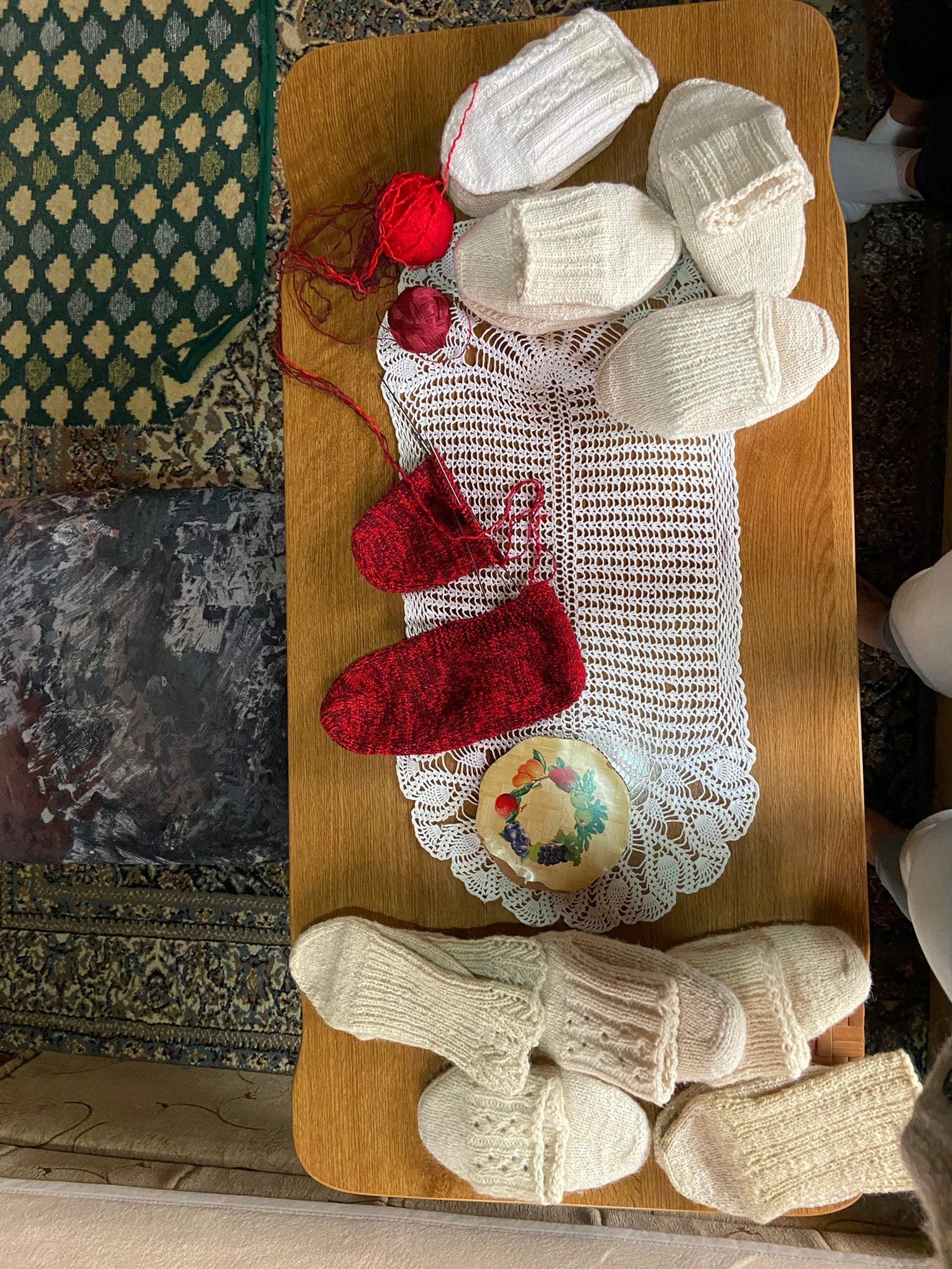 Deze vrouwen, vastberaden en volhardend, dragen de zware last van herinneringen en verhalen die de wereld nooit mag vergeten. Hun bewonderenswaardige vermogen om te overleven en hun ongeëvenaarde kracht om door te gaan, zijn indrukwekkend. In deze sokken weven ze niet alleen draad; ze weven ook een verhaal van veerkracht en hoop.