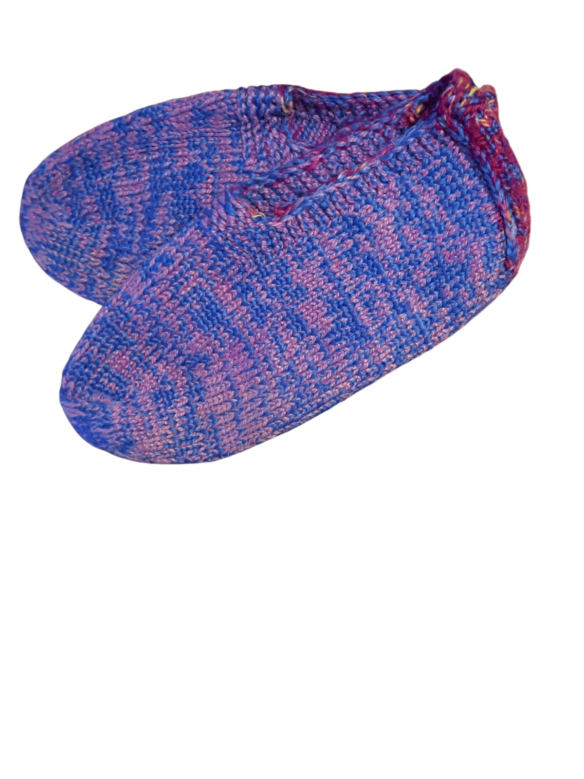 Deze kleurrijke en warme slofsokken zijn gemaakt van katoen en acryl garen. De vrouwen maken ze naar traditionele Bosnische patronen en in verschillende kleuren.
