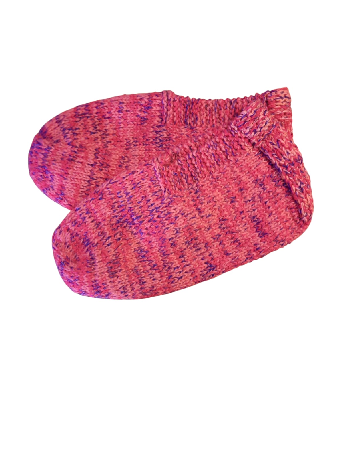 Deze kleurrijke en warme slofsokken zijn gemaakt van katoen en acryl garen. De vrouwen maken ze naar traditionele Bosnische patronen en in verschillende kleuren.